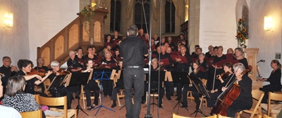 Unter der Leitung von Ruedi Rüfenacht und Erika Holzmann führten die Jubilaren und Jubilarinnen im rund stündigen Konzert mit ihren Liedern durch nahezu 500 Jahre Kirchenmusik. Unterstützt von einem Orchester von 8 Streichern, 3 Bläsern und Kathrin Günther an der Orgel.