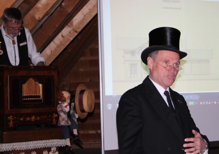 Geführt durch die beiden historisch gekleideten Co-Leiter des Museums, durften die Gäste auf dem Rundgang durch die Sonderausstellung die 150-jährige Geschichte erleben. Bekanntes und unbekanntes löste Erstaunen aus. Die Drehorgelmusik sowie der offerierte Apéro rundeten die äusserst gelungene Vernissage ab.