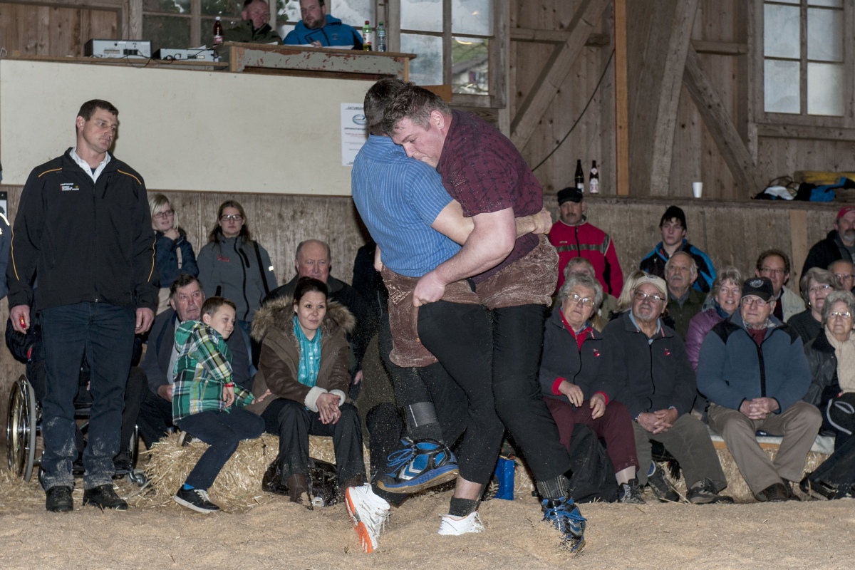 Der Sieger des 18. Hallenschwinget in Obediessbach heisst Christian Stucki. Er gewann den Schlussgang gegen Ruedi Roschi.