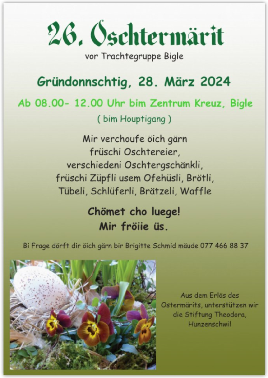 Us em Erlös vom Oschtermärit ungerstütze mir d'Stiftig Theodora, Hunzenschwil.