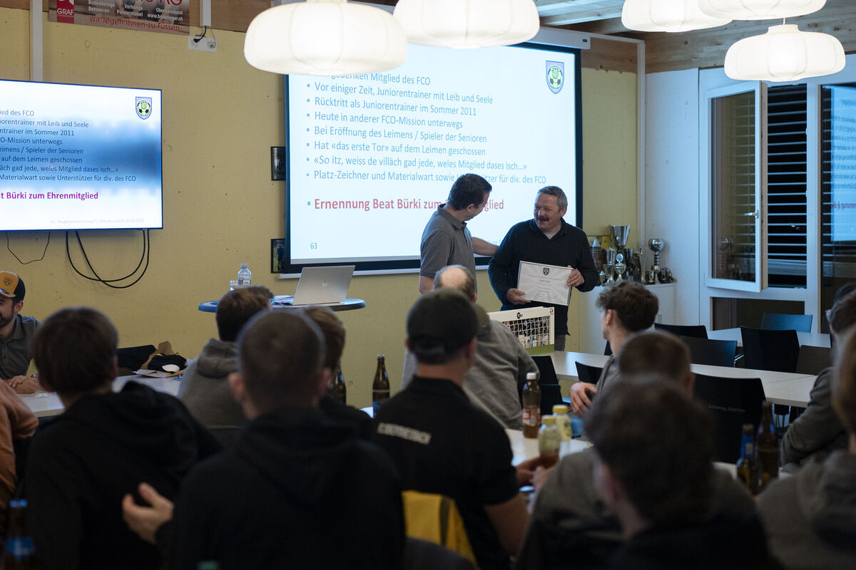 Ein weiterer wichtiger Punkt der Versammlung war die Ernennung von Beat Bürki und Stephan Anderegg zu Ehrenmitgliedern des FC Oberdiessbach. Beide haben sich über viele Jahre hinweg in herausragender Weise für den FC Oberdiessbach engagiert. Die Mitglieder würdigten ihre Verdienste mit stehendem Applaus und dankten ihnen für ihren unermüdlichen Einsatz. Wir danken den beiden für ihren Einsatz und freuen uns, weiterhin auf ihre Hilfe setzen zu dürfen.