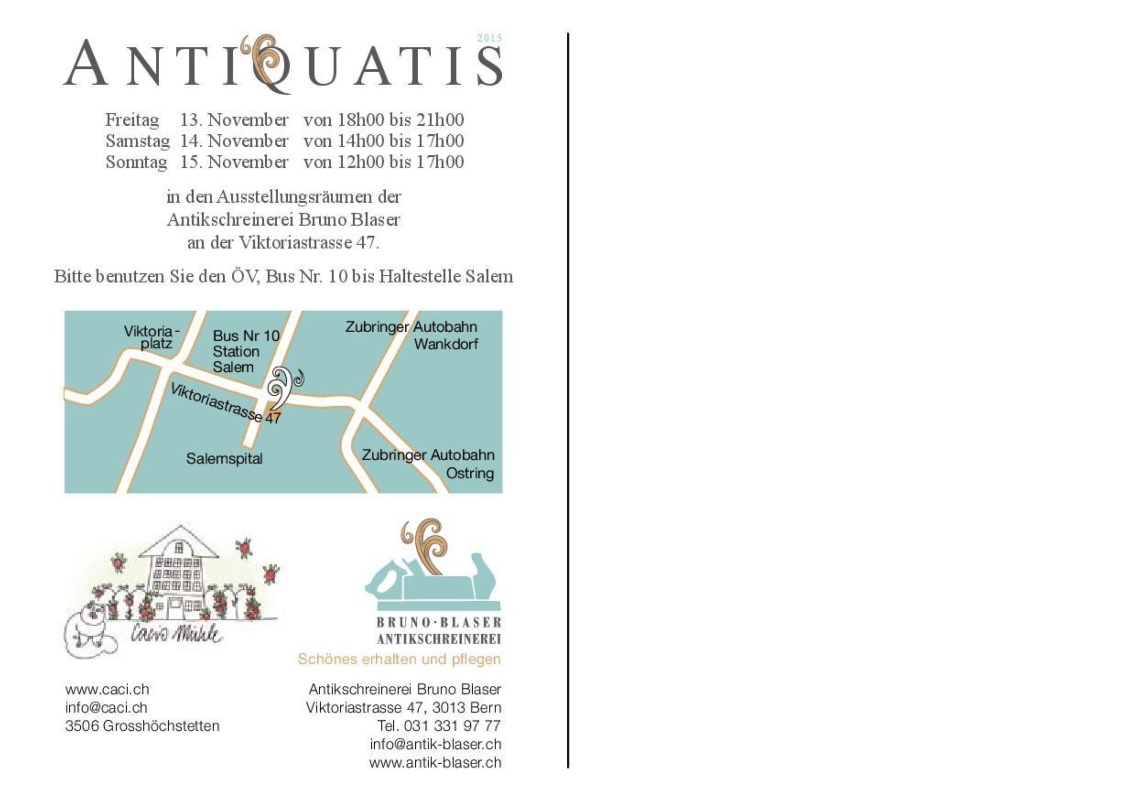 Wir dürfen bei und mit Katrin und Bruno Blaser ausstellen in der Bruno Blaser Antikschreinerei, Viktoriastrasse 47, Bern. Lassen Sie sich überraschen - wir freuen uns auf Sie!