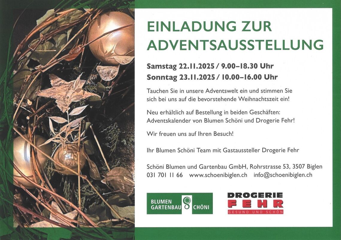 Adventsausstellung Blumen Schöni & Drogerie Fehr