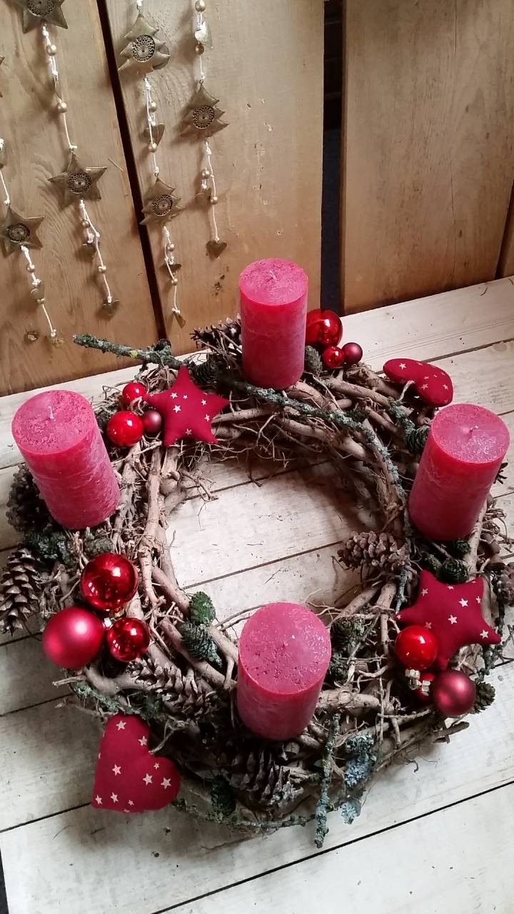 Adventskränze, Kerzengestecke, Türschmuck, ausgarnierte Pflanzen und verschiedene Accessoires.