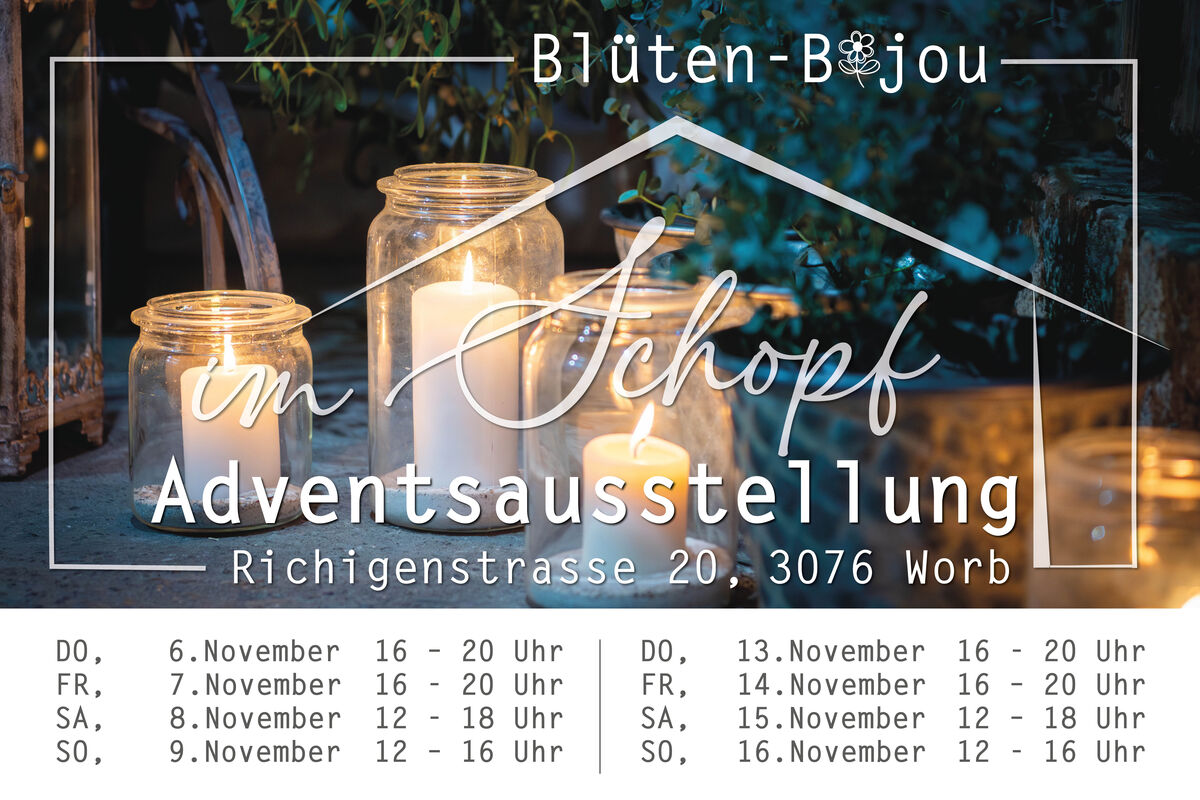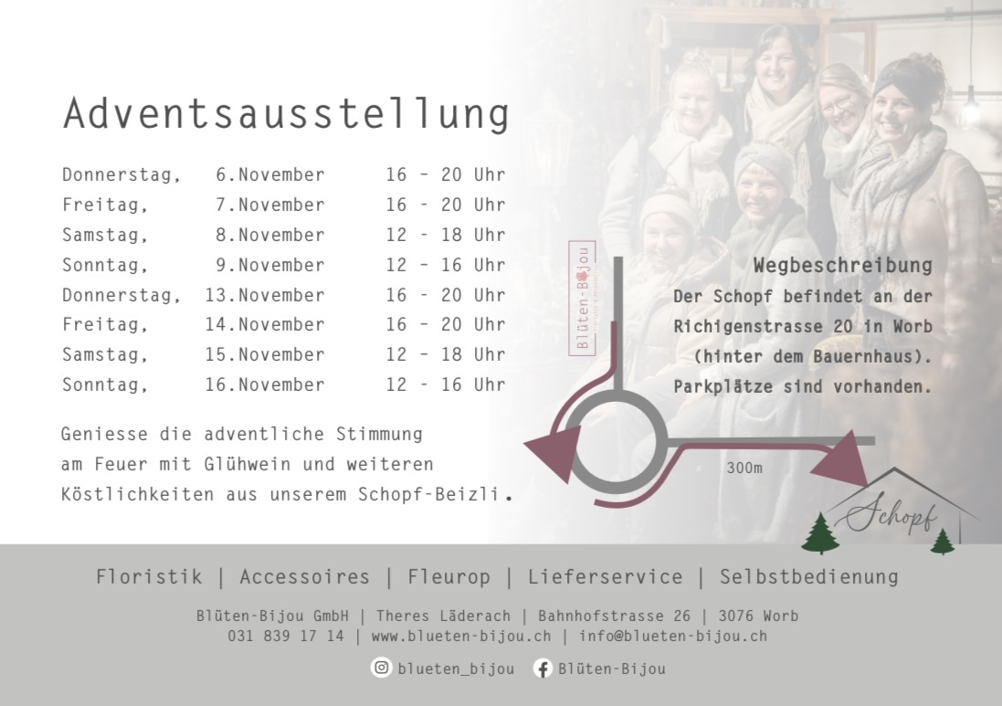 Wir laden Sie herzlich zu unserer Adventsaustellung im Schopf an der Richigenstasse 20 in Worb ein.