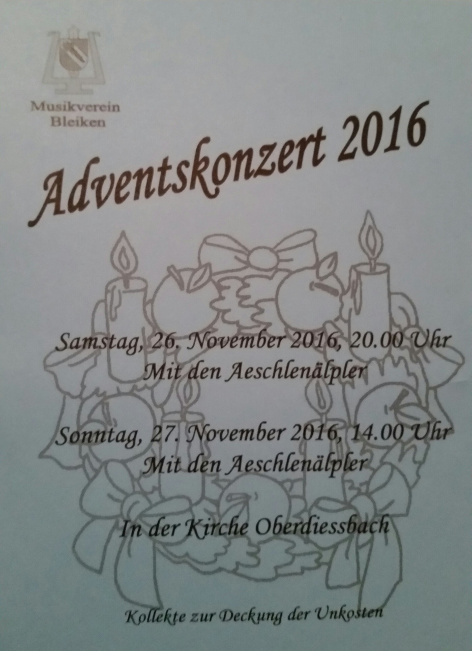 Adventskonzert 2016 mit den Aeschlenälpler