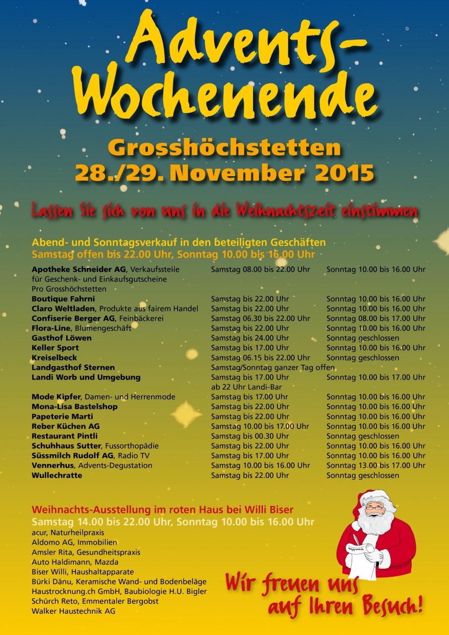 Adventswochenende Grosshöchstetten 28. November 2015 / 29. November 2015