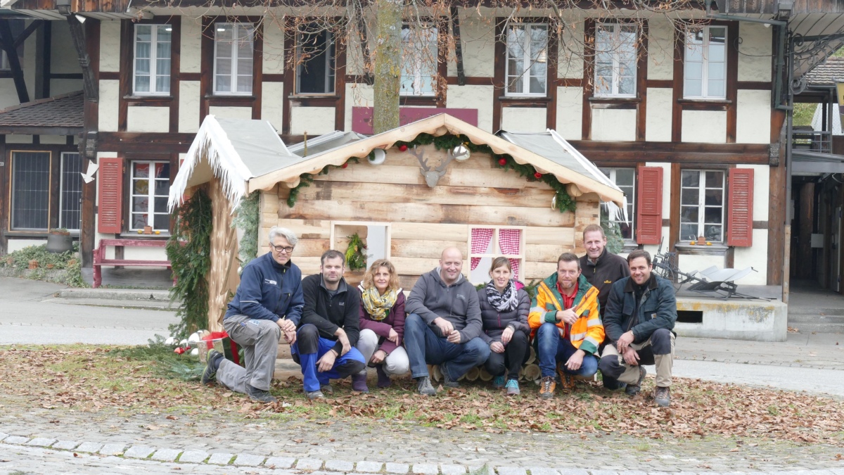 In vielen freiwilligen Arbeitsstunden hat ein Team des Gewerbevereins Vechigen die Alphütte geplant und konstruiert. Am ersten Adventssamstag wurde das Hüttli dann in den frühen Morgenstunden vor Ort aufgerichtet.