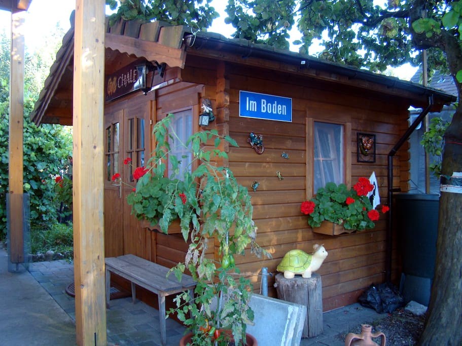 Lauschige Sitzecke unter blühenden Bäumen, Gartendeko undGrill-Chalet: Mit besonders viel Liebe zum Detail eingerichtet ist das Bed and Breakfast "Room for Beduin" in Brenzikofen.