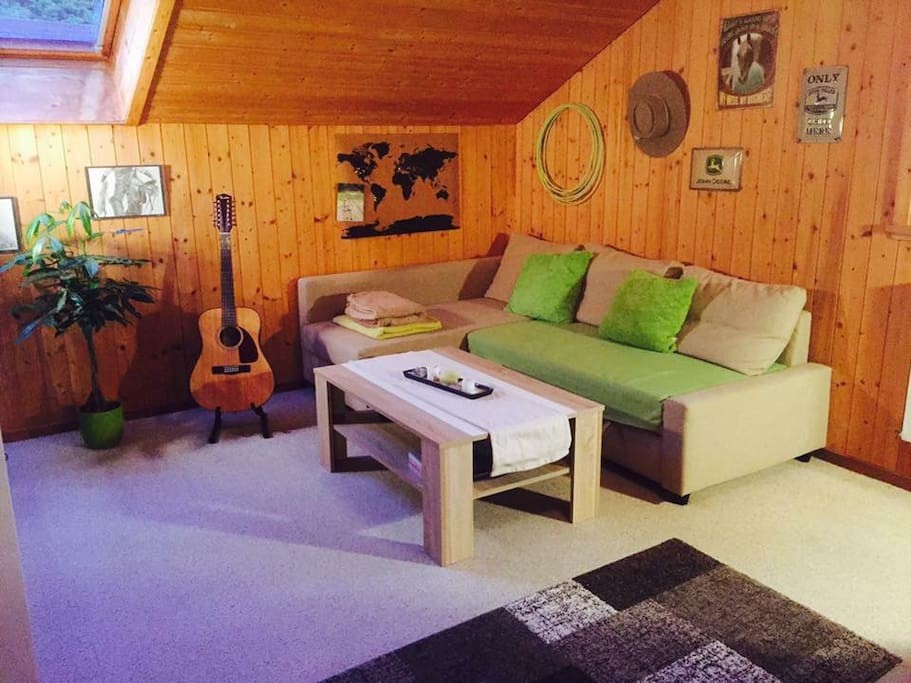 Man wähnt sich beinahe wie im Land der Cowboys: In Trimstein vermietet eine Pferdenärrin ihre gemütliche Dachwohnung mit Alpenblick.