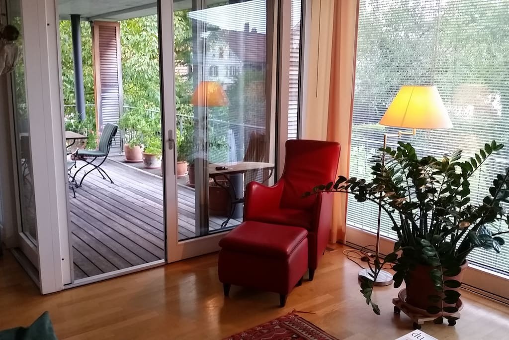 Freunde von Kunst und Antiquitäten sind hier richtig: Diese elegante Wohnung im Zentrum von Worb ist voll davon und hat eine gemütliche Terrasse mit Blick in die Bäume.