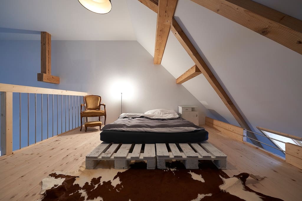 Die Unterkunft "Zum Drahtesu" in Münsingen ist besonders für Kinder und Jugendliche ein Hit: Hier können sie in luftiger Höhe auf der Galerie übernachten.