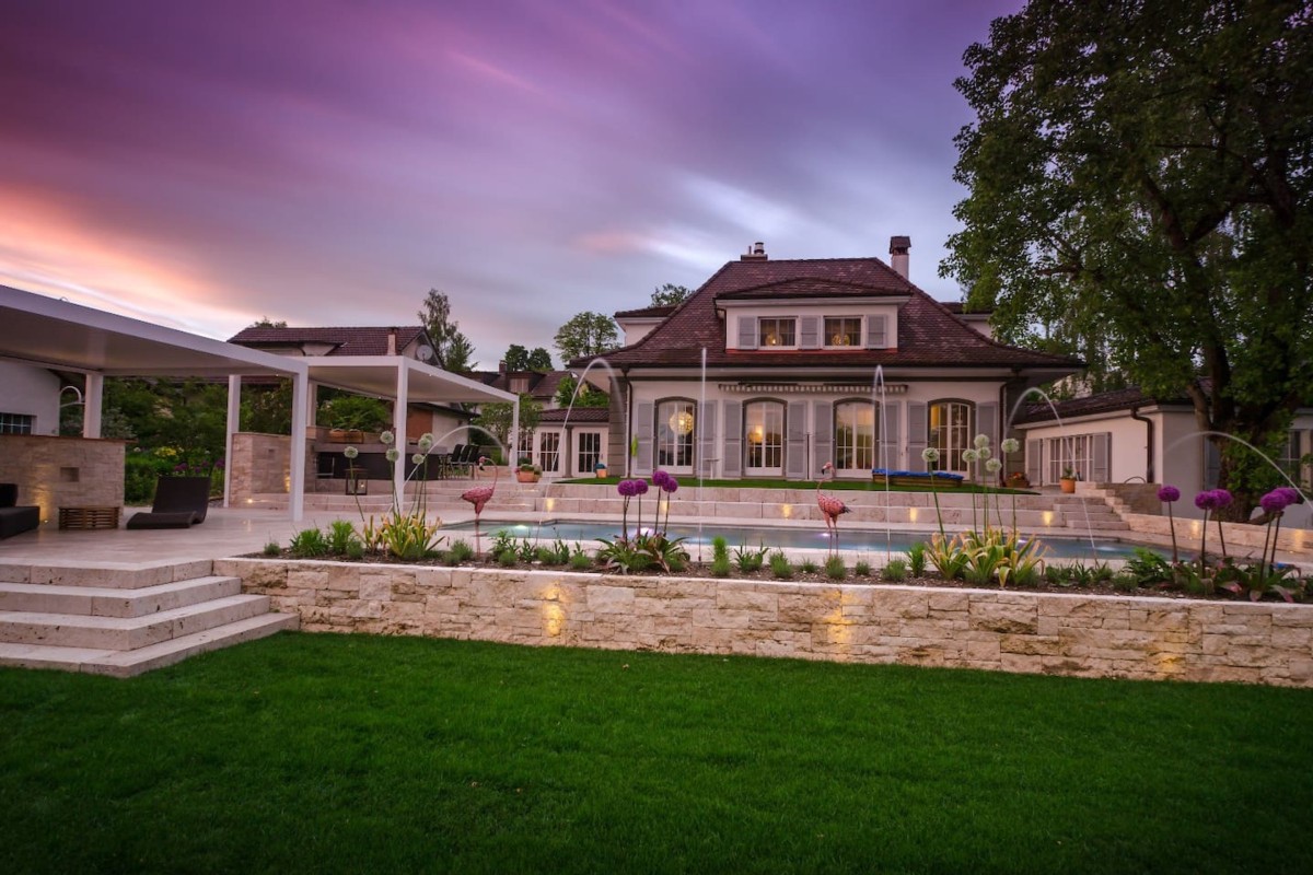 Flamingos und Springbrunnen: Nicht zu toppen in der Region Bern-Ost ist definitiv das moderne Appartement in einer Landhaus-Villa in Bolligen.