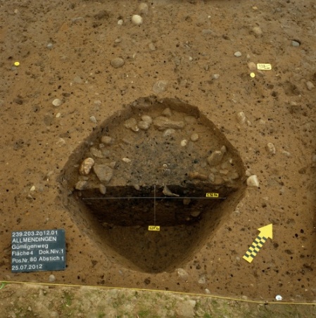 In der Medienmitteiklung heisst es weiter: "In den Schichten unter der Strasse können immer wieder prähistorische Keramikscherben und dazugehörige Pfostengruben beobachtet werden. Sie sprechen dafür, dass das Areal um das Schloss Allmendingen mindestens seit der Bronzezeit, also bereits im 2. Jahrtausend vor Christus besiedelt wurde."