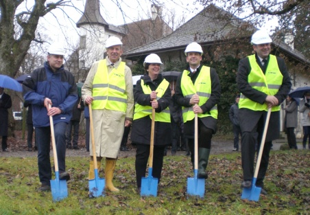 Miserables Wetter begleitete den Spatenstich beim Schloss Allmendingen. Das veranlasste Gemeindepräsidentin Sibylle Burger-Bono zur Bemerkung: "Es ist gleich wie bei einer Hochzeit: Wenn es regnet, kommt es gut."