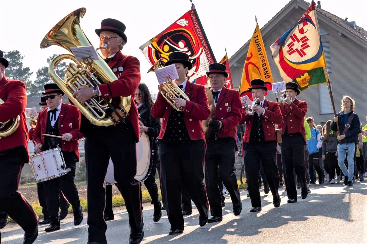 Unsere Wichtracher Musik spielt und heisst die Vereine willkommen. Es wird auch Vereine geben, die mit einem Marsch einmarschieren. Danach gibt es ein Glas Wein oder Orangensaft mit einem Stück Züpfe zur Begrüssung.