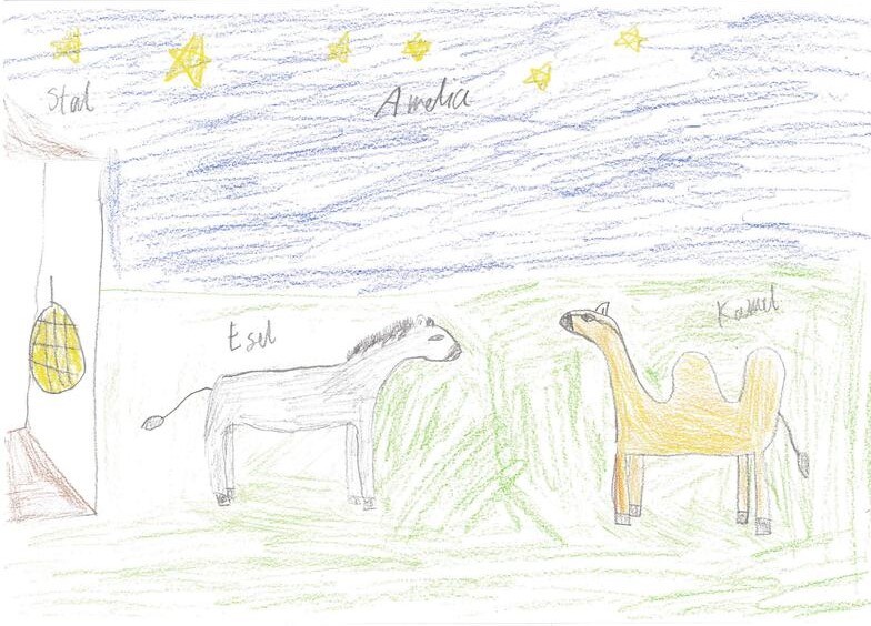 "Die Geschichte handelt von einem Kamel aus dem Palast Balthasars, das nach der Reise zur Volkszählung auf Josefs und Marias Esel trifft", sagt Jung. Die beiden Tiere erlebten die Reise sehr unterschiedlich, was beim Aufeinandertreffen zu lustigen Diskussionen führe. Die Schulkinder setzten die Geschichte auch in Zeichnungen um, welche man sich auf der Schulwebsite ebenfalls zu Gemüte führen kann.