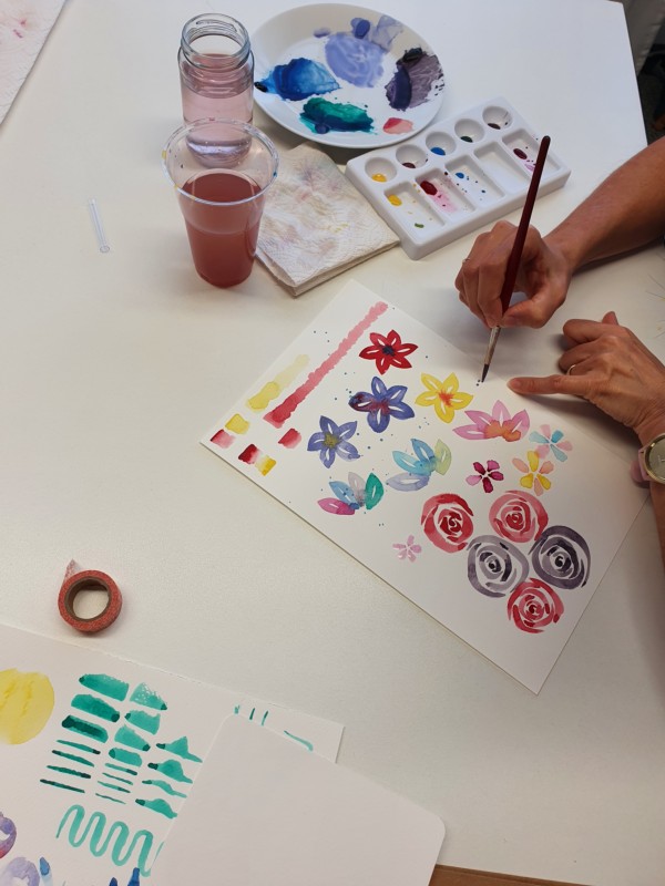 In einer kleinen Runde lernen wir in diesem Kurs die Grundlagen des Aquarell-Malens. Du brauchst keine Vorkenntnisse und ich hatte schon viele Teilnehmer:innen, die gesagt haben: "Dass ich sowas schönes Malen kann, hätte ich nie gedacht!"