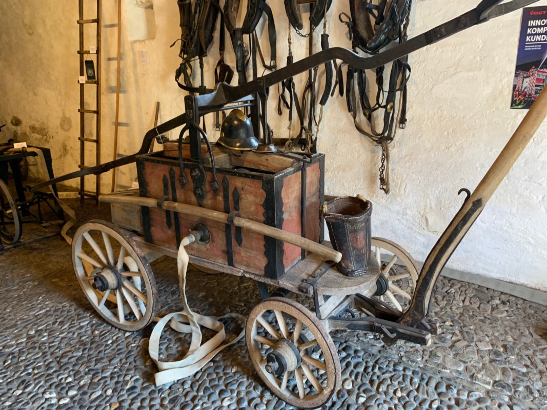 "Weil das Schlossmuseum Spiez uns die Hand-Feuerspritze von 1759 zurückgab, haben wir das als Thema der Sonderausstellung aufgenommen", erklärte Gabi Speck. Diese Spritze sei sicher auch beim verheerenden Dorfbrand 1765 eingesetzt worden. "Da diese Spritze nicht selbst ansaugen konnte, musste das Wasser in Löscheimern zugetragen werden". Für den Transport wurde diese alte Feuerwehrspritze auf einen zweiachsigen Karren (Protze genannt) aufgesetzt. "Wenn es nötig war, konnte die Spritze vom Protz gehoben werden und ohne Untergestell genutzt werden. So ist das Wort "Abprotzen", das wir ja heute noch ähnlich wie das Abbauen brauchen, entstanden", erzählte Hans Hofer. Im gleichen Keller- oder Sockelraum wo die alte Feuerwehrspritze steht, kann auch vieles über die weltweit bekannte Simmentaler Pferdezucht erfahren werden.