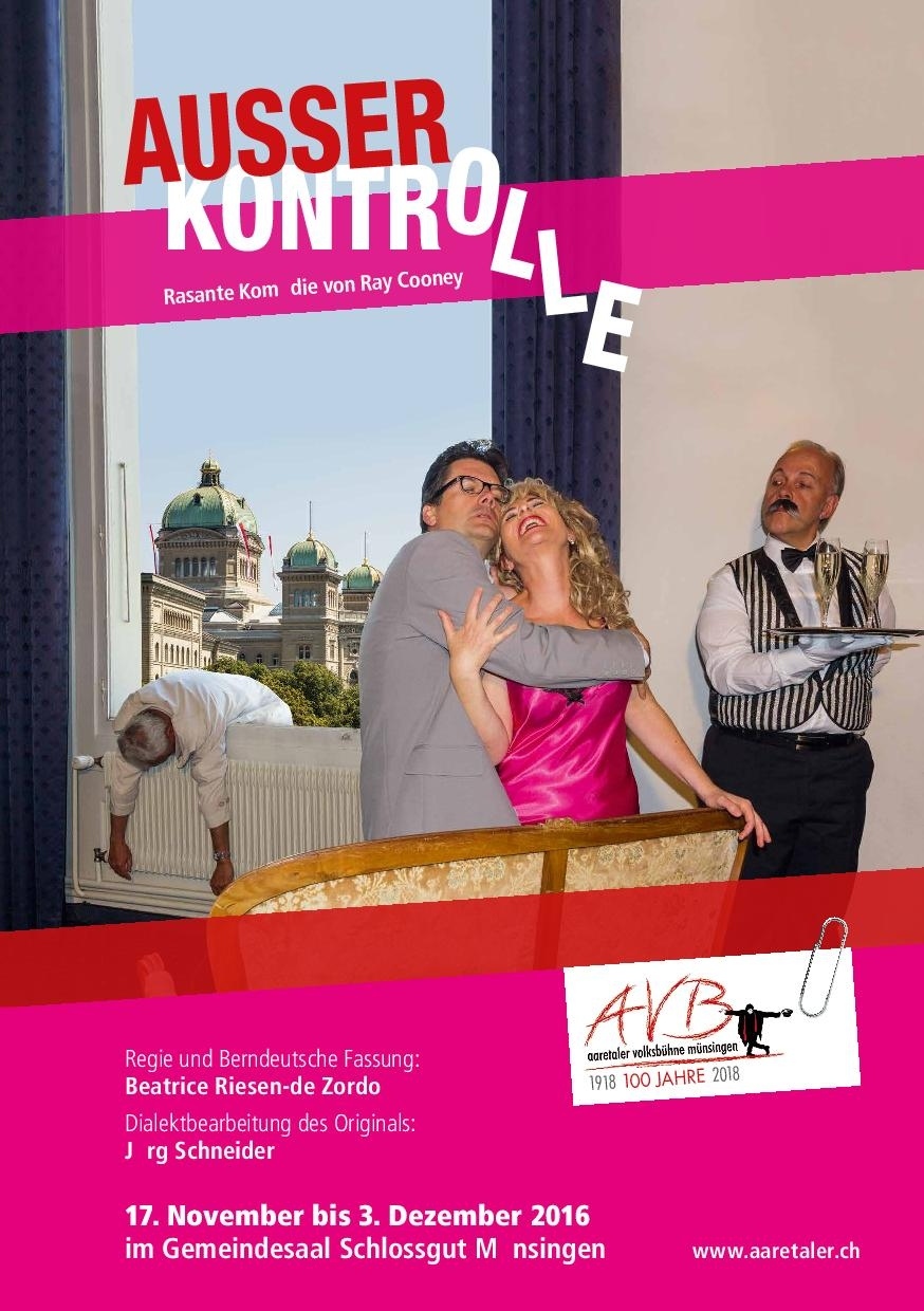 Die Aaretaler Volksbühne Münsingen präsentiert "Ausser Kontrolle" - eine rasante Komödie von Ray Cooney.