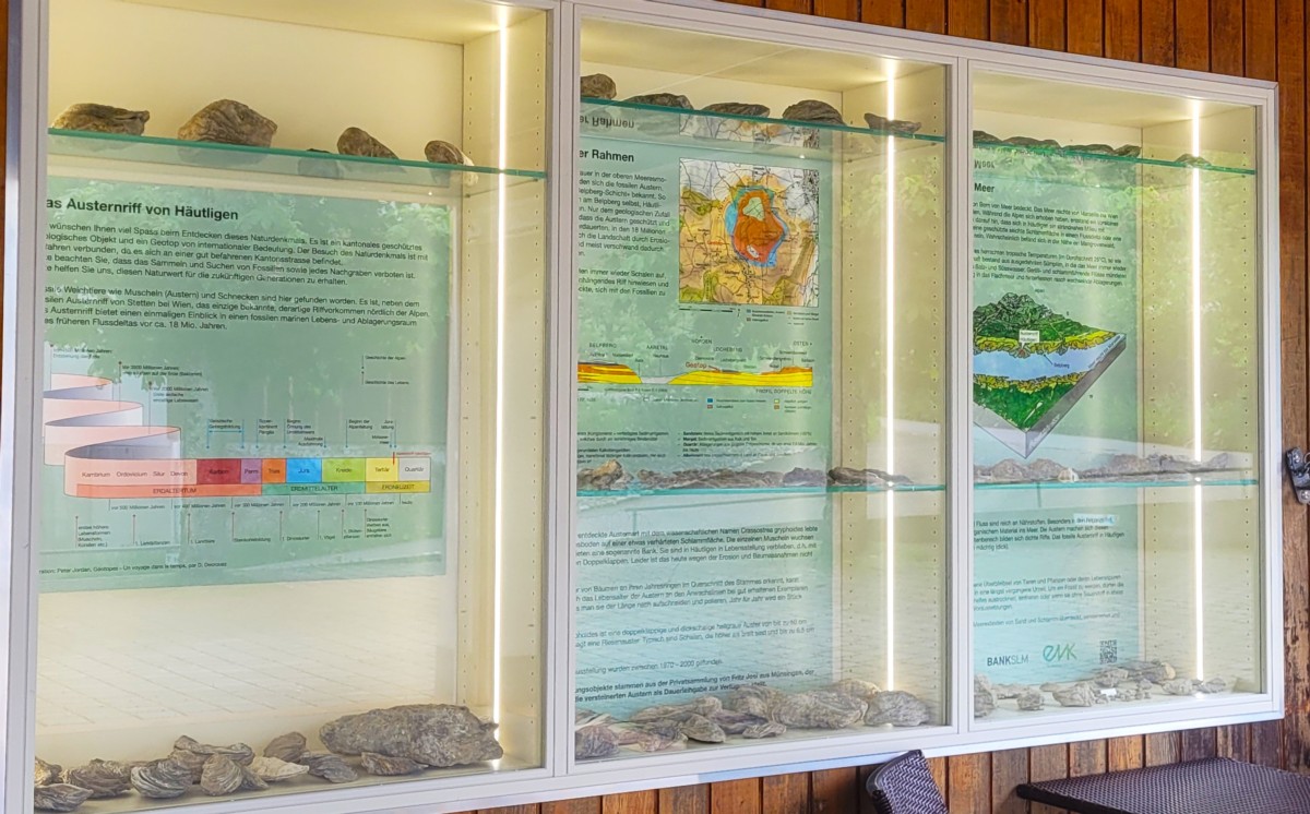 Genau zu diesem Riff eröffnete die Gemeinde Häutligen nun eine Dauerausstellung beim Schulhaus mit Fossilien aus der Privatsammlung der Münsingers Fritz Josi und vielen Begleitinformationen.