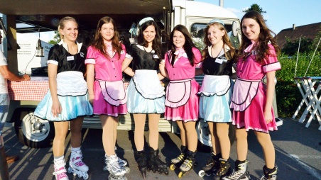 Die Besucher fahren mit ihrem Auto - am besten natürlich mit einem stilechten alten Amerikaner - auf das Gelände. Jedes Auto erhält ein Tisch mit einem Lämpchen, mit welchem der Zuschauer die Rollergirls um Bedienung direkt am Auto bitten. Der Filmton wird über den extra installierten UKW-Radiosender in jedes Autoradio übertragen.