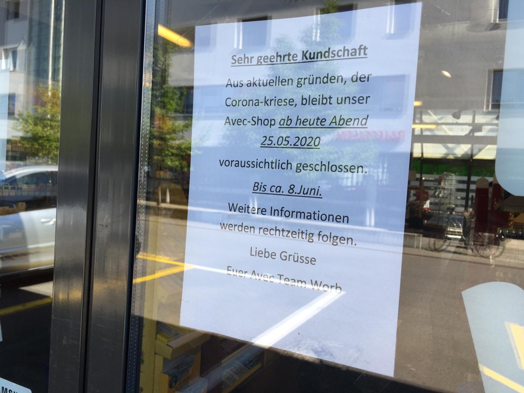 Während die meisten Geschäfte wieder öffnen, schliessen die Avec-Läden am Worber Bahnhof und in Konolfingen. Laut Valora hängt die Schliessung mit der Corona-Krise zusammen.