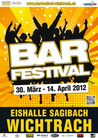 Bar Festival Wichtrach 2012, Das grösste Hallenfestival der Region. 2'500m2 Partyzone, Topp-DJs, Shows und 30 Bars. Vom 30. März bis 14. April ist das legendäre Bar Festival zurück in der Eishalle Wichtrach. Die Besucher erwarten nationale und internationale Topp-DJs, Danceanimation, gigantische Lichteffekte und 30 liebevoll eingerichtete Bars. Seit über 10 Jahren und mit 20'000 Besuchern jährlich ist das Bar Festival der Treffpunkt für feier- und flirt-freudiges Publikum und hat sich längst einen Namen ausserhalb der Region gemacht. Shuttle-Bus: jeden Abend verkehren Shuttlebusse nach Bern und Thun. Abfahrt ab Eishalle Wichtrach um 01:30h, 02:30h und 03:45h. Der Bus hält an allen Haltestellen der Moonliner-Linie M15. Tickets sind an der Abendkasse oder im Vorverkauf erhältlich.