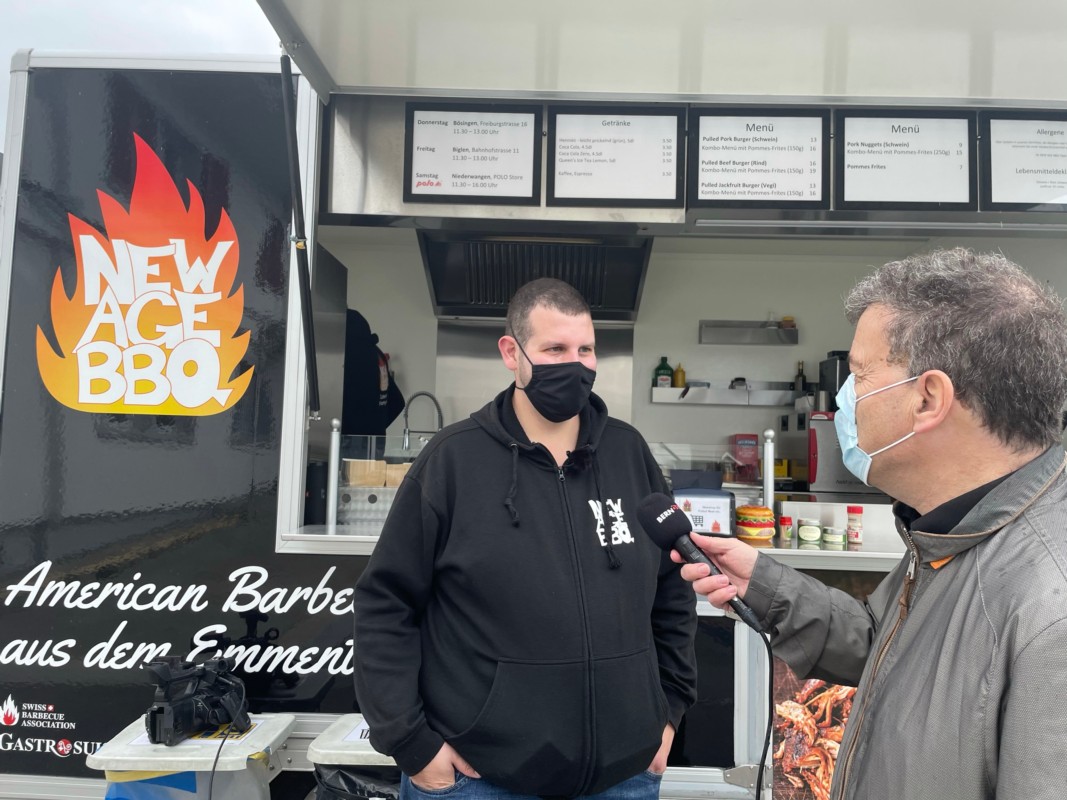 Zu Gast im Food-Truck von New Age BBQ, welcher jeden Freitag in Biglen den Leuten aus der Umgebung den Mittag versüsst.