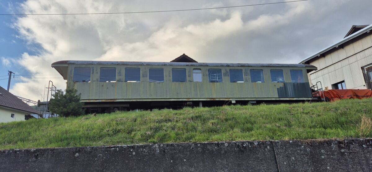 Im Dampfbahn Bern-Depot in Konolfingen, direkt sichtbar von der Bernstrasse aus, erinnert der alte Wagon seit Jahren an vergangene Zeiten. Für viele ist er ein Stück Kindheit, Eisenbahnromantik oder schlicht ein vertrauter Anblick auf dem Arbeitsweg.