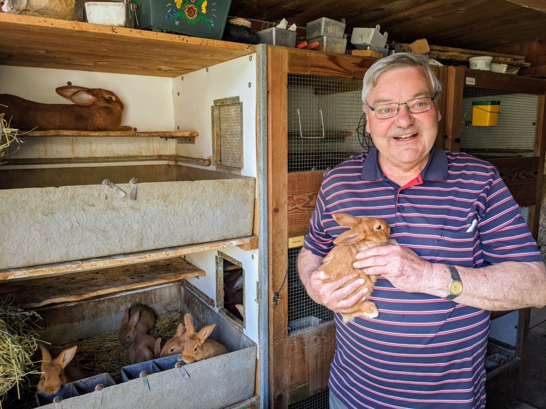 Hasen hatte Beat Egli schon als Kind in Walkringen um sich. Mit 19 Jahren hat der bald 70-Jährige selber mit dem Züchten begonnen und ist in die Ornithologische Gesellschaft Biglen und Umgebung eingetreten. Seit 21 Jahren ist er deren Präsident.