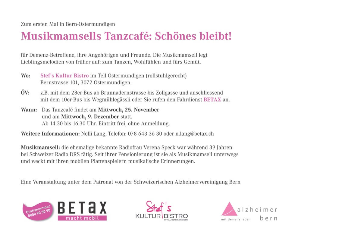 Eine Veranstaltung unter dem Patronat von der Schweizerischen Alzheimervereinigung Bern.