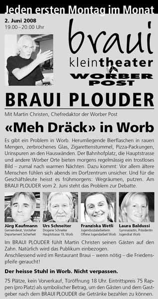 BRAUI PLOUDER: "Meh Dräck in Worb"