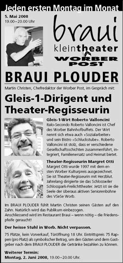 BRAUI PLOUDER mit Gleis-1-Wirt Roberto Valloncini und Regisseurin Margret Otti