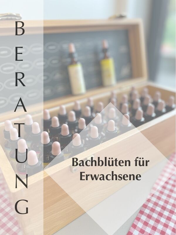 Nach einem eingehenden Gespräch mit genügend Platz und Raum um Ihre Bedürfnisse und Wünsche zu besprechen, wähle ich passende Bachblüten für Sie aus. Wir besprechend die Wahl der Bachblüten zusammen um für Sie wichtige Erkenntnisse zu schaffen. Anschliessend stelle ich Ihnen die Bachblütenmischung her die Sie mit nach Hause nehmen können. Diese reicht ca. 3 Wochen, dann können Sie eine Fortsetzungsflasche bestellen oder in ein zweites Gespräch kommen, um je nach Bedarf andere Bachblüten zusammenstellen zu lassen, die Sie auf Ihrem Weg begleiten.