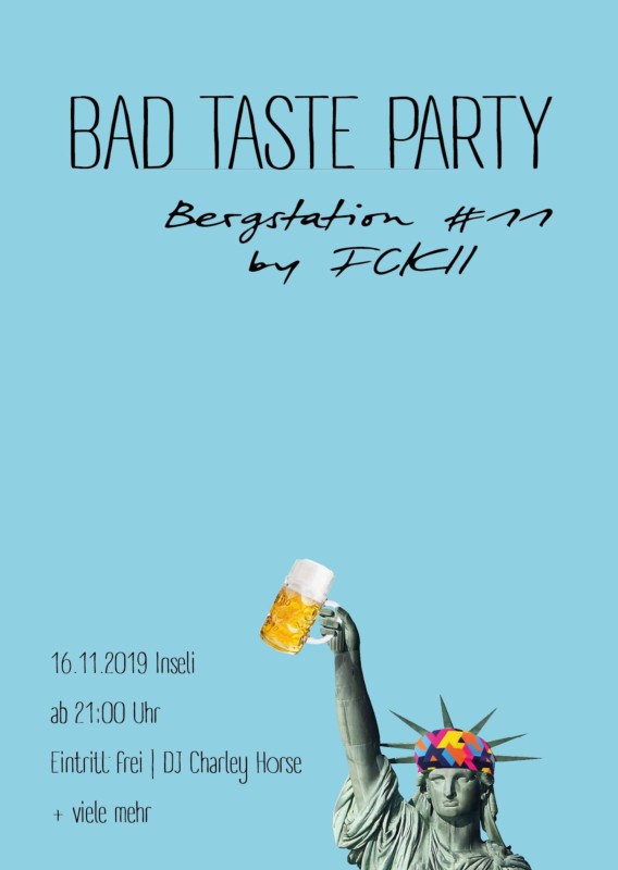 Wie ihr wisst, sind dem schlechten Geschmack keine Grenzen gesetzt, also lasst eurer Fantasie freien Lauf. Die Pforten sind ab 21:00 geöffnet, damit DJ Charley Horse das Inseli zum Überlaufen bringen kann.