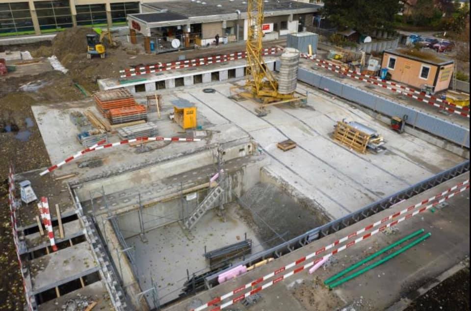 "Die ersten Stahlwände im neuen Freibadbecken sind angebracht", heisst es auf der Facebook-Seite des Schwimmbads Grosshöchstetten.