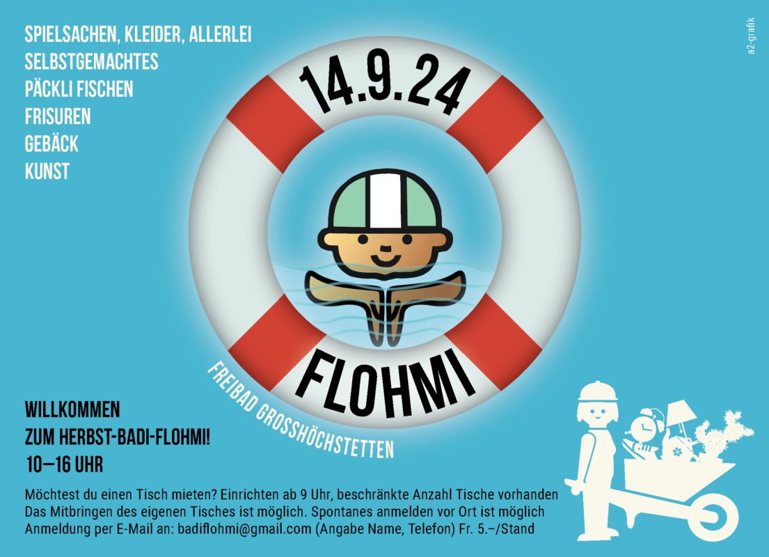 Willkommen sind alle. Spontane Standmiete vor Ort möglich. CHF 5.– pro Stand. Kinder dürfen ihre Ware auf einem Liegestuhl des Schwimmbades oder auf einem Tuch am Boden ohne Standkosten ausbreiten.