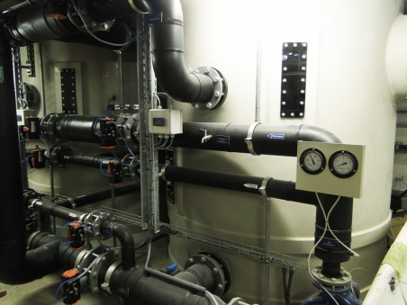 Die Technik für das Hallen- und das Freibad befindet sich im Untergeschoss. Ganz im Gegensatz zur lieblichen Sommerstimmung über der Erde herrscht hier Lärm, Chlorgestank und ein Labyrinth aus Rohren, Pumpen, Tanks und Anzeigen. Als gelernter Sanitär kannte Gottier sich mit Leitungen schon vorher aus. Nach zehn Jahren als Bademeister kennt er hier aber jedes Rohr und jedes Ventil mit Namen.