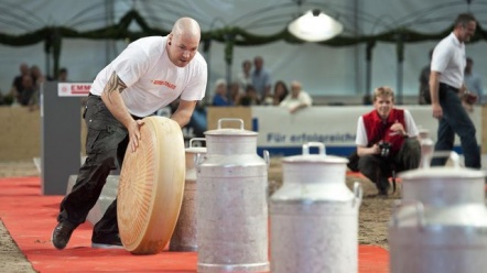 Vier grosse Milchkannen, drei Wellen, ein Tor, ein Wippbrett und nochmals eine Milchkanne: So sah der Hindernisparcours an der Schweizer Käserollmeisterschaft an der BEA aus. Nachdem zunächst Promis 5-Kilo-Käseattrappen durch den Parcours bugsierten, rollten die Profis mit ihren 100-Kilo-Emmentaler an. Der Oberhüniger Daniel Zürcher meisterte dabei den Parcours als Schnellster.
