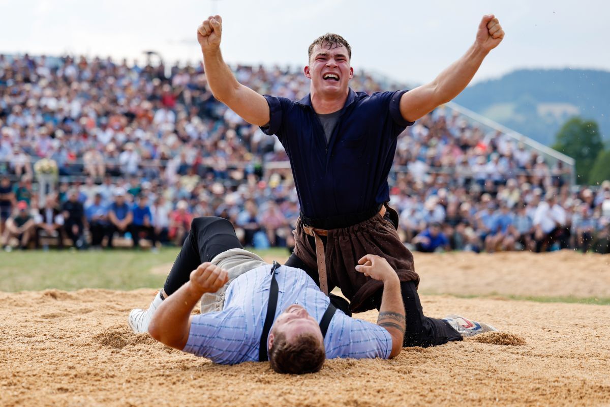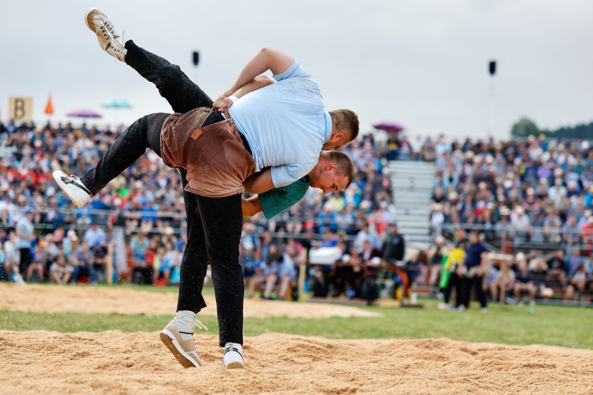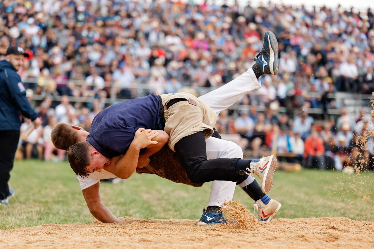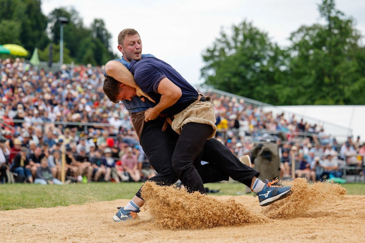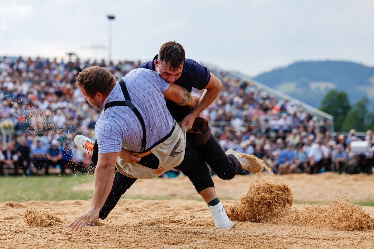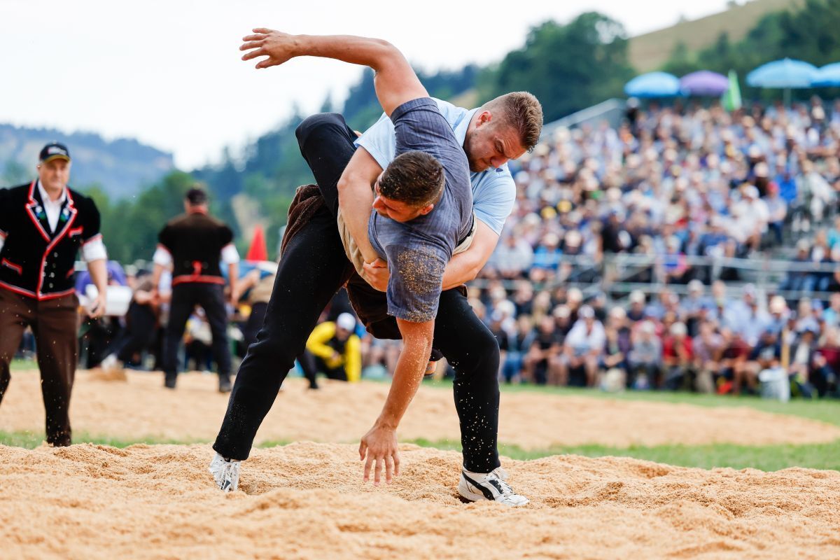 Den ersten Gang gewann Moser eher mühsam. Zwar wurde ihm der Innerschweizer Gast Samuel Schwyzer nicht ernsthaft gefährlich. Doch er machte ihm das Leben schwer, indem er sich aus den Griffen wand und wohl einfach auf keinen Fall verlieren wollte. Dazu kam es trotzdem. Als Moser seinen Gegner schliesslich richtig in den Händen hielt, legte er ihn platt auf den Rücken.