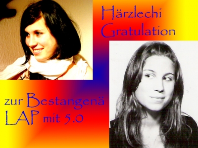 mir gratuliere dir härzläch zur bestangenä abschlussprüefig aus pharmaassistäntin und wünsche dir z bestä für di witer wäg..!