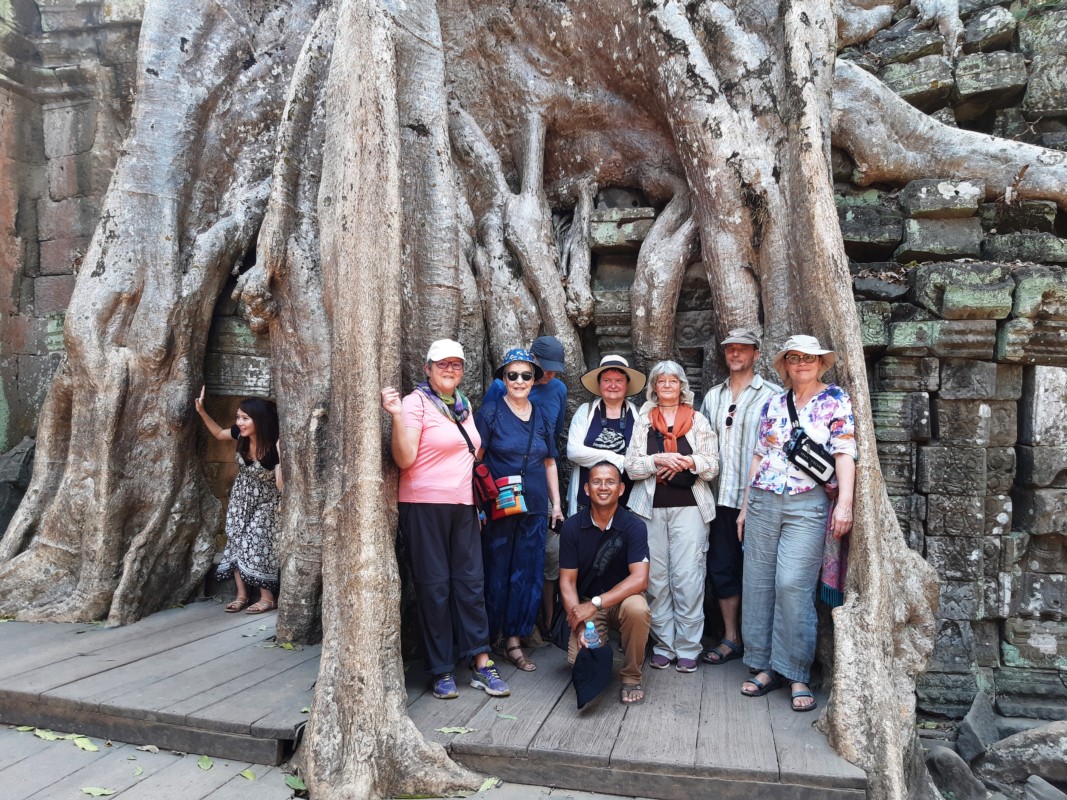Nach einer umständlichen Passkontrolle am Flughafen von Siem Reap, wo zehn Männer in Uniform der Reihe nach alle Ausweise prüften, wurde die Reisegruppe von Red mit einem Bus abgeholt. Die folgenden Tage verbrachten sie mit Ausflügen und dem Besichtigen von Sehenswürdigkeiten. Unter anderem stand die Besichtigung einer Seidenfabrik, der Besuch eines Stelzendorfes und eine Bootstour auf dem Programm. Für Franziska Weibel war es auch ein kulinarisches Erlebnis: "Ich habe mich die ganzen zwei Wochen nur mit einheimischer Küche ernährt. Das gehört für mich bei Reisen dazu. Und es war auch extrem lecker."