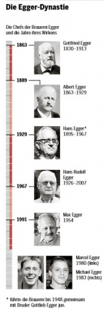 Marcel Egger wird die Brauerei dereinst gemeinsam mit seinem Bruder Michael führen - für wann die Stabsübergabe geplant ist, behalten die Eggers noch für sich. Marcel ist für Personal und Verkauf zuständig, Michael hat in München eben einen Braumeistertitel erworben. Wie stark spüren die beiden die Verpflichtung, in die Fussstapfen ihrer Ahnen zu treten? «Wir sind beide freiwillig da, es wurde nie Druck auf uns gemacht.» Marcel Egger betont, er und sein Bruder seien beide auf Umwegen zur Brauerei gekommen. «Man darf sich von der langen Familientradition nicht verrückt machen lassen», sagt er in seiner bedächtigen Art. So ist auch ein Verkauf der Brauerei für Marcel Egger kein Thema. Das Erbe von Urururgrossvater Gottfried wird also weitergeführt.