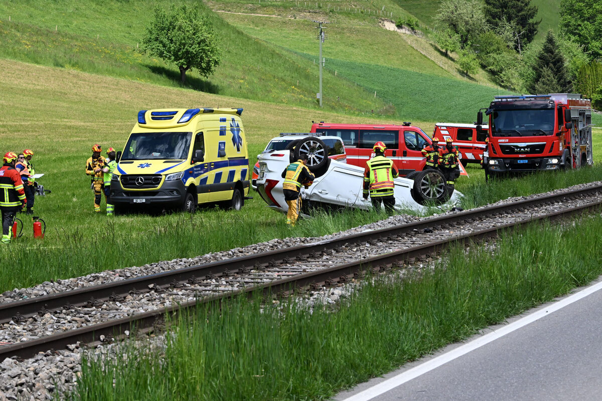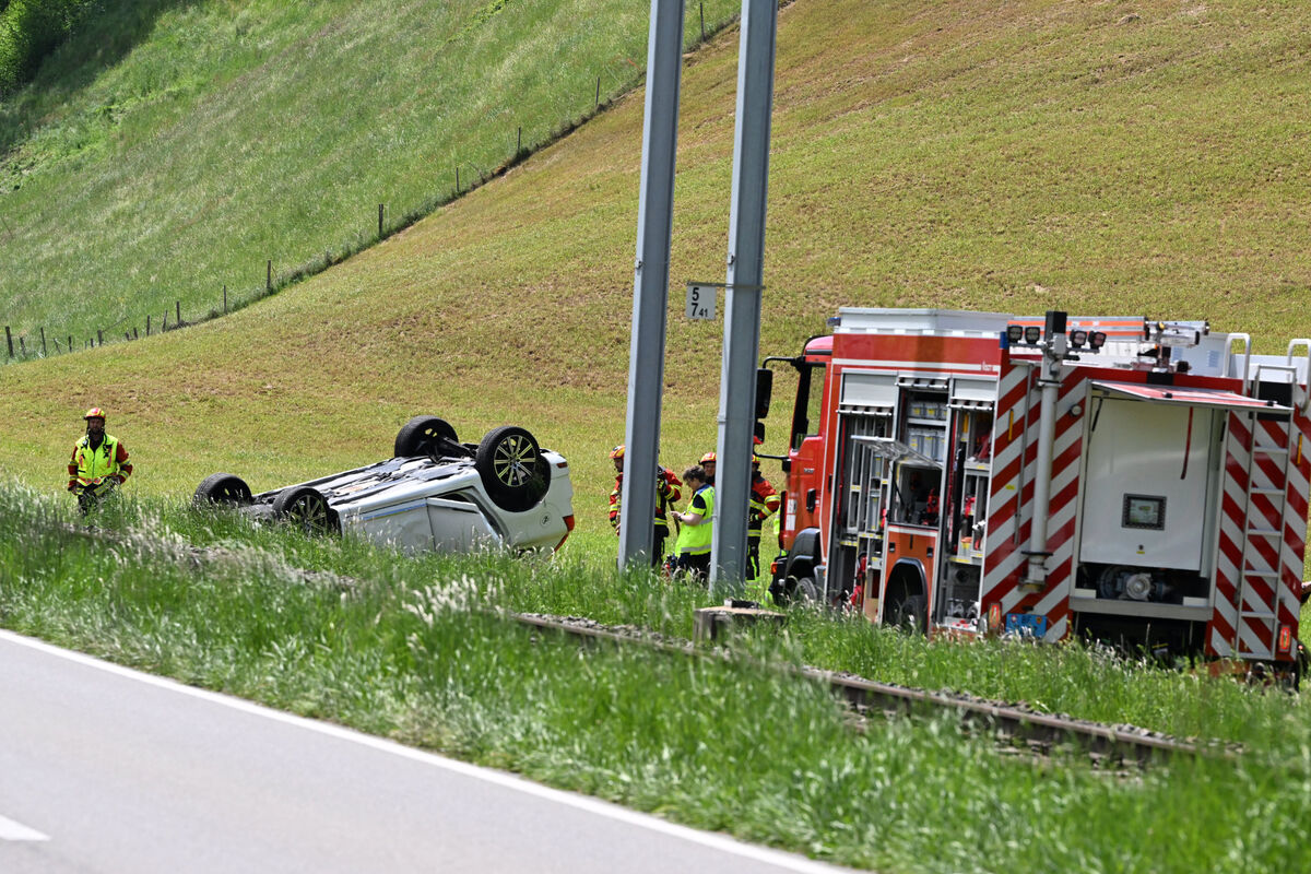 Spektakulärer Selbstunfall am Sonntagnachmittag in Walkringen. Gegen 13.30 Uhr verlor laut Berner Zeitung BZ ein Lenker zwischen Bigenthal und Schafhausen auf der Höhe des Weilers Grindlachen die Herrschaft über sein Fahrzeug. Dieses kam von der Strasse ab, überquerte die Gleise der BLS-Linie und blieb auf der angrenzenden Wiese auf dem Dach liegen.