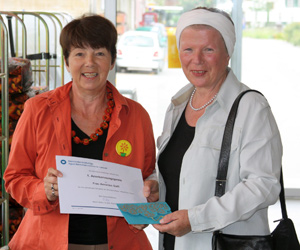 Der Anerkennungspreis, eine Urkunde und ein Geldbetrag, wurde am letzten Samstag, anlässlich des Blumenverkaufs, von Barbara Michel von der Bernischen Krebsliga an die Präsidentin des Frauenvereins, Annelies Galli, übergeben.