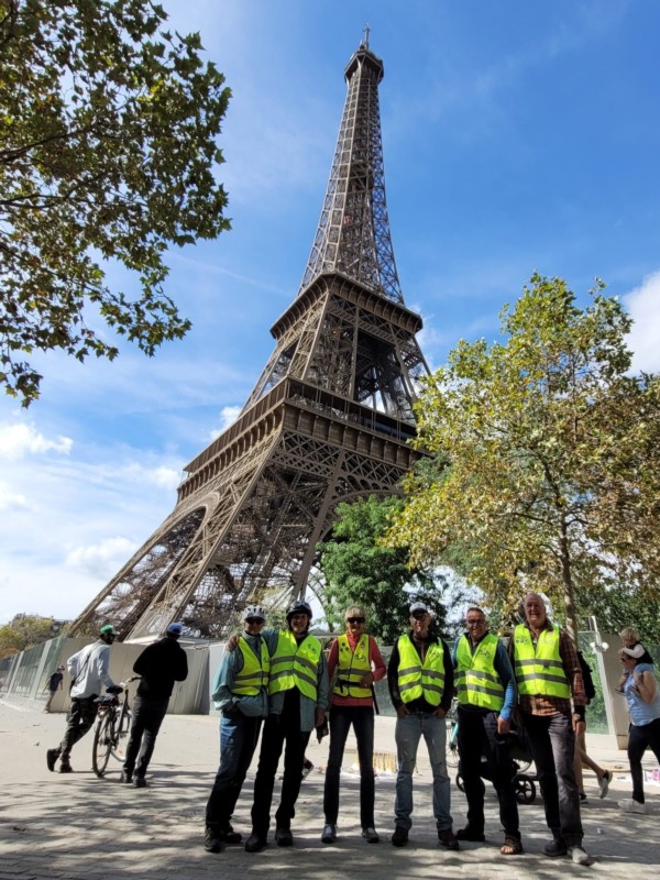 Es war doch eine ziemlich grosse Herausforderung, da das Verkehrsaufkommen sehr stark war und die Radstreifen nicht gerade Velosolex tauglich. Wir haben es trotzdem geschafft und kamen glücklich und stolz beim Eiffelturm an.