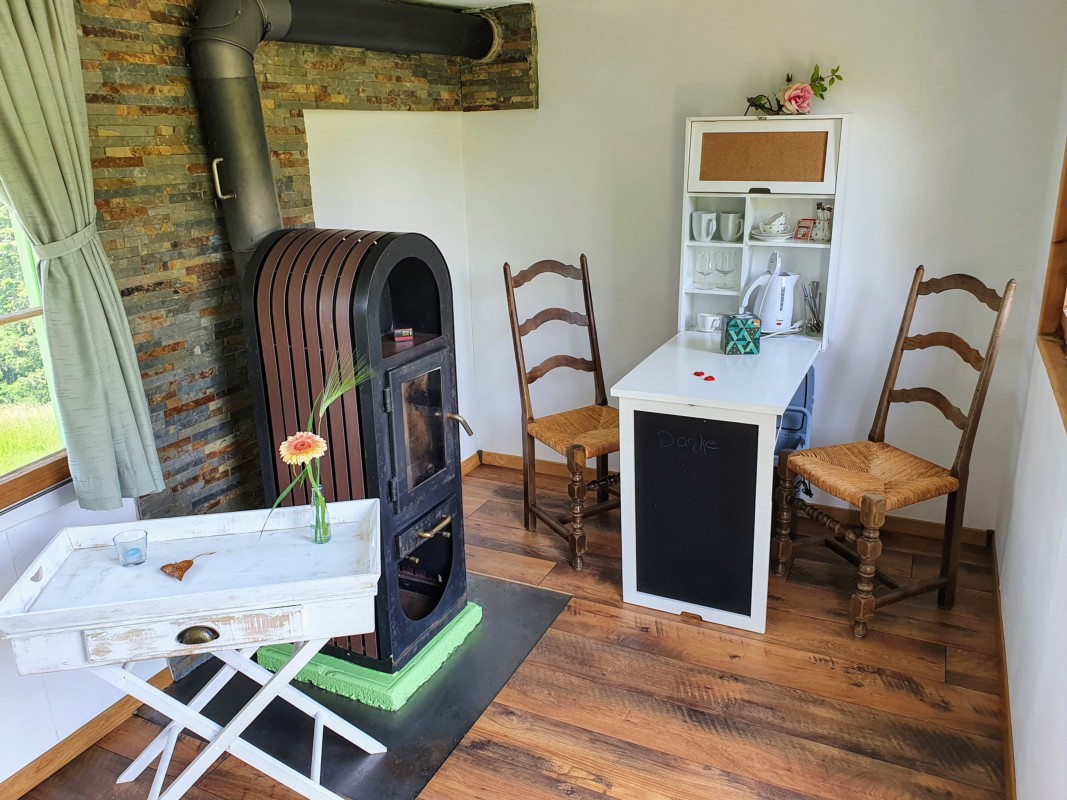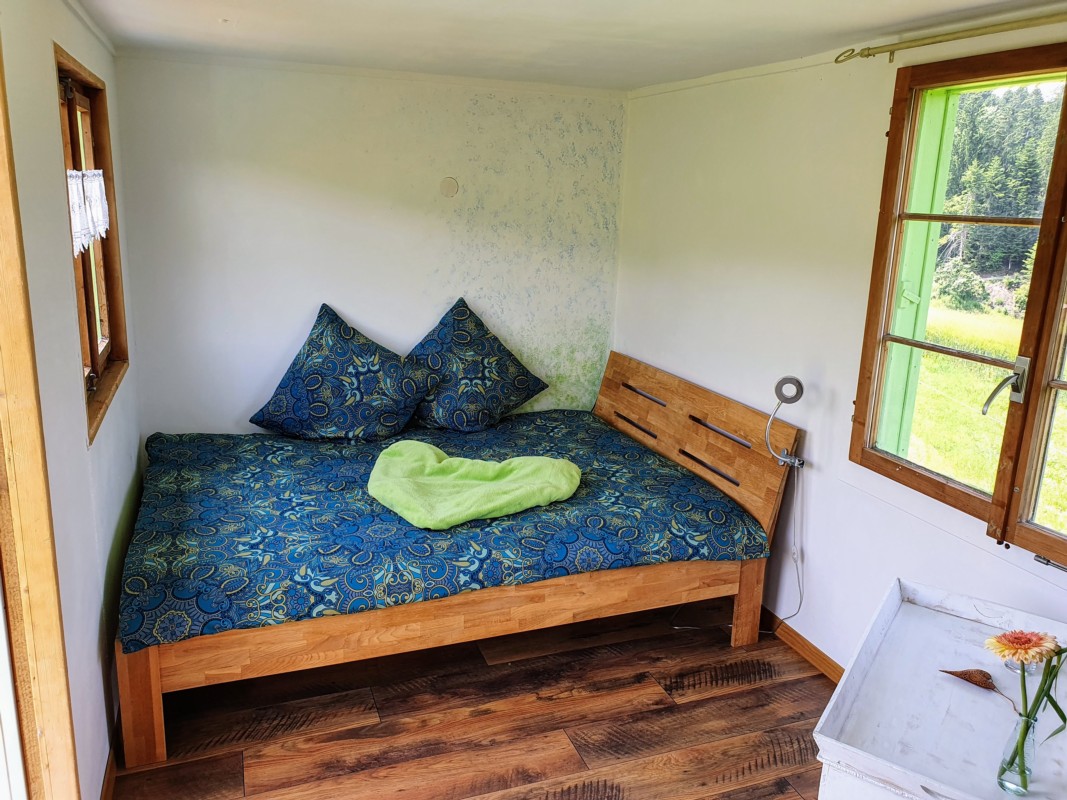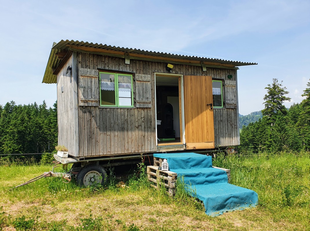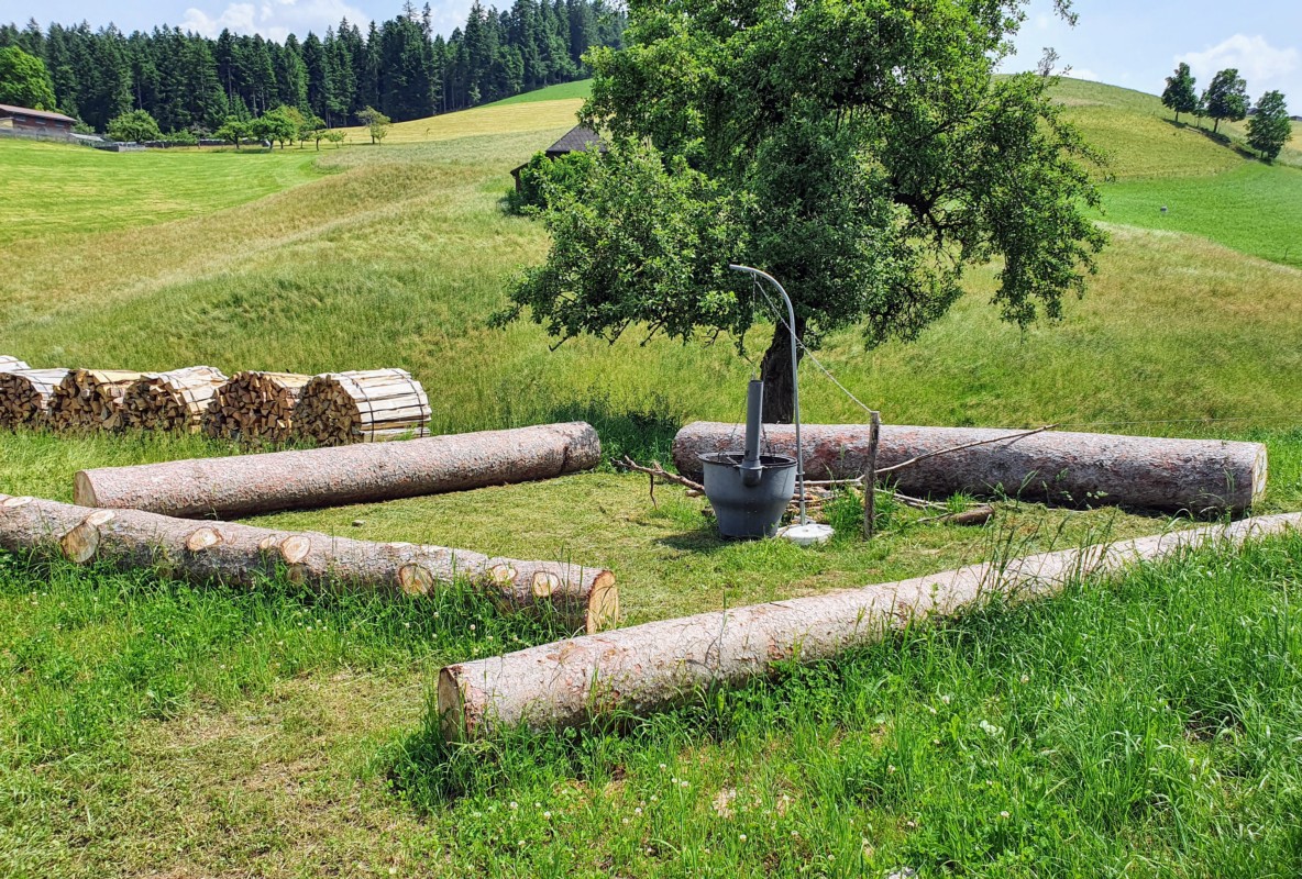 Ein Angebot zum Übernachten gibt es aber bereits. In einem umgebauten Bauwagen finden zwei Personen Platz. Zudem gibt es auf dem Gelände einen Container mit Dusche und WC, einen Mini-Hofladen mit eigenen Fleisch- und Käseprodukten, Getränken und Snacks, verschiedene Sitzgelegenheiten und einen grossen Brätliplatz.