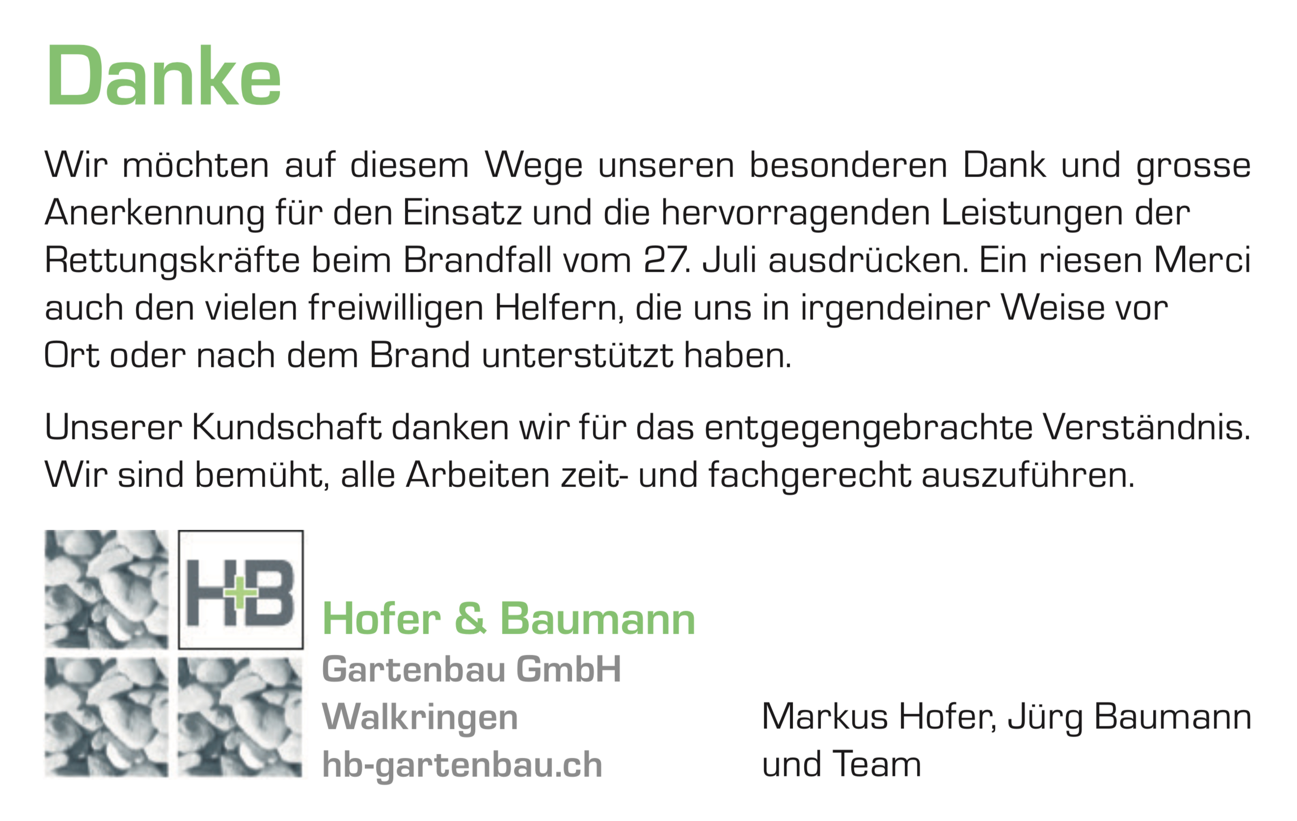 Brand in Bigenthal: Danke!