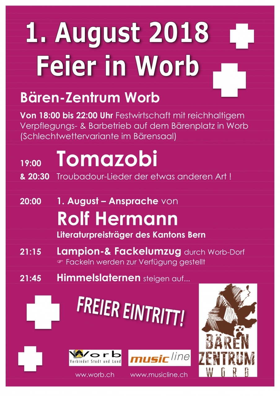 Bären-Zentrum Worb Von 18:00 bis 22:00 Uhr Festwirtschaft mit reichhaltigem Verpflegungs- & Barbetrieb auf dem Bärenplatz in Worb (Schlechtwettervariante im Bärensaal)